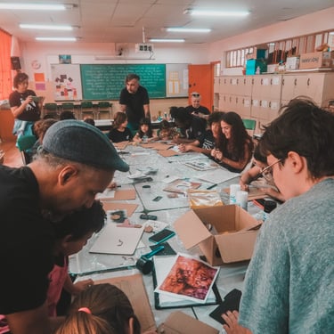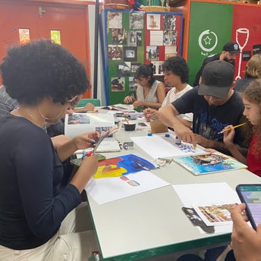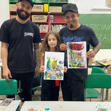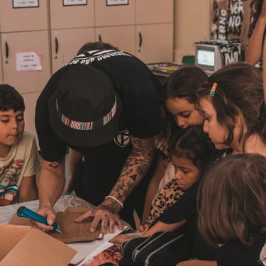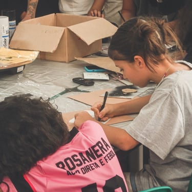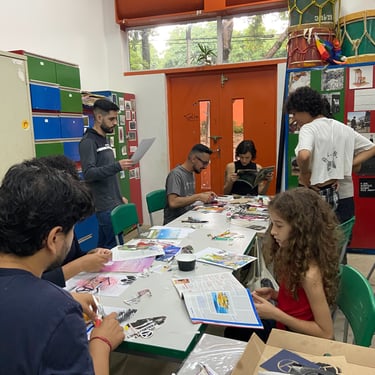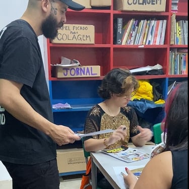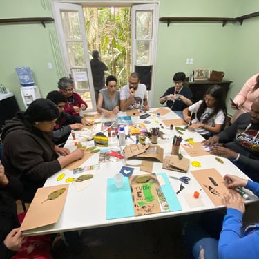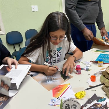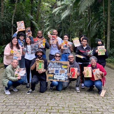 As oficinas de colagem com resíduos, independente do tema de oficina, estará sempre os temas das questões ambientais urgentes de nosso tempo, estimulando o questionamento das nossas formas de consumo e ampliando o nosso senso de natureza.